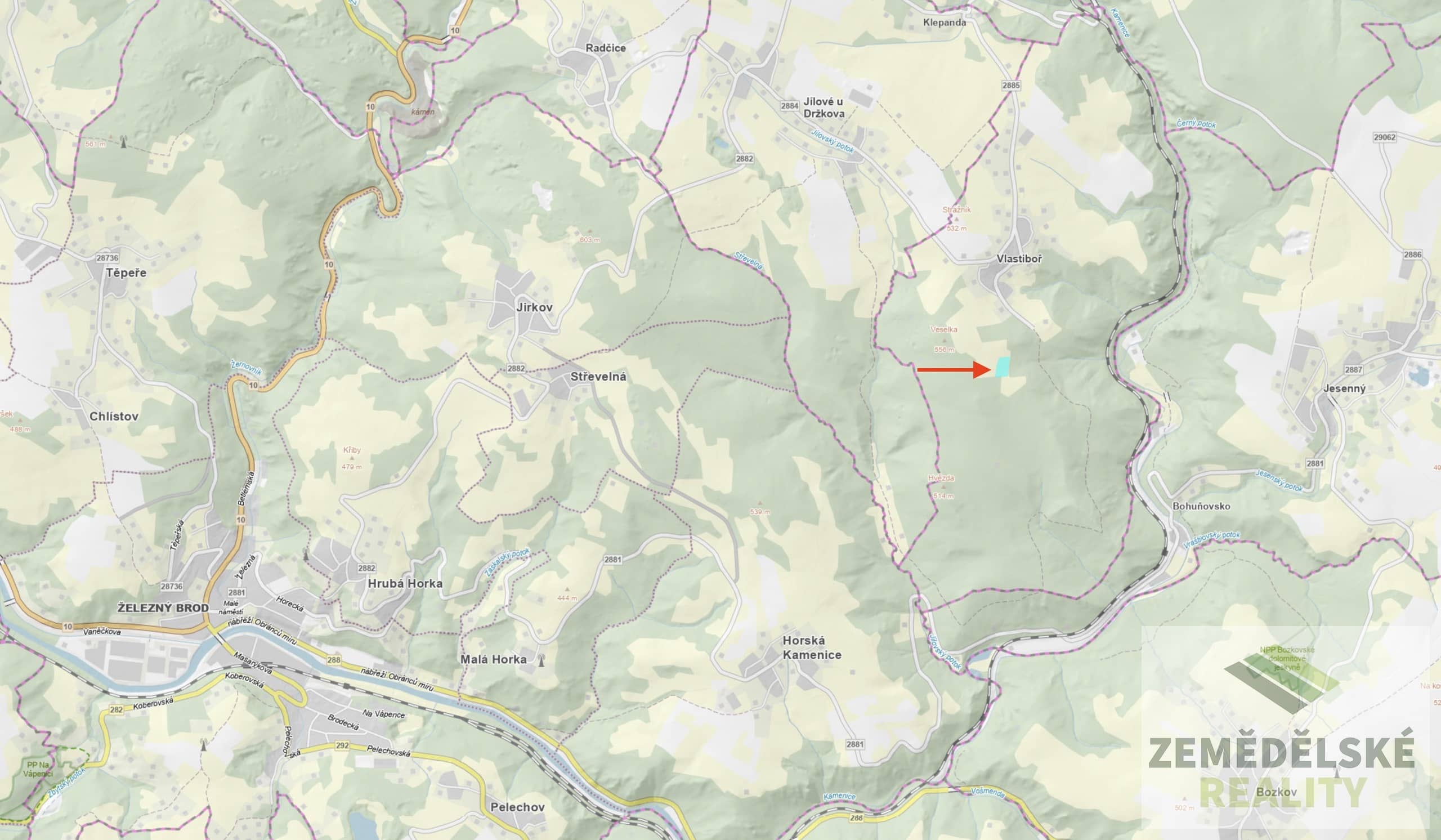 Nabízíme k prodeji 1/2 podíl na louce v katastrálním území Vlastiboř u Železného Brodu o prodejní výměře 3221,5 m2. Prodávaná parcela číslo 3100 vedená na listu vlastnictví číslo 71 je přístupná přes obecní parcely.