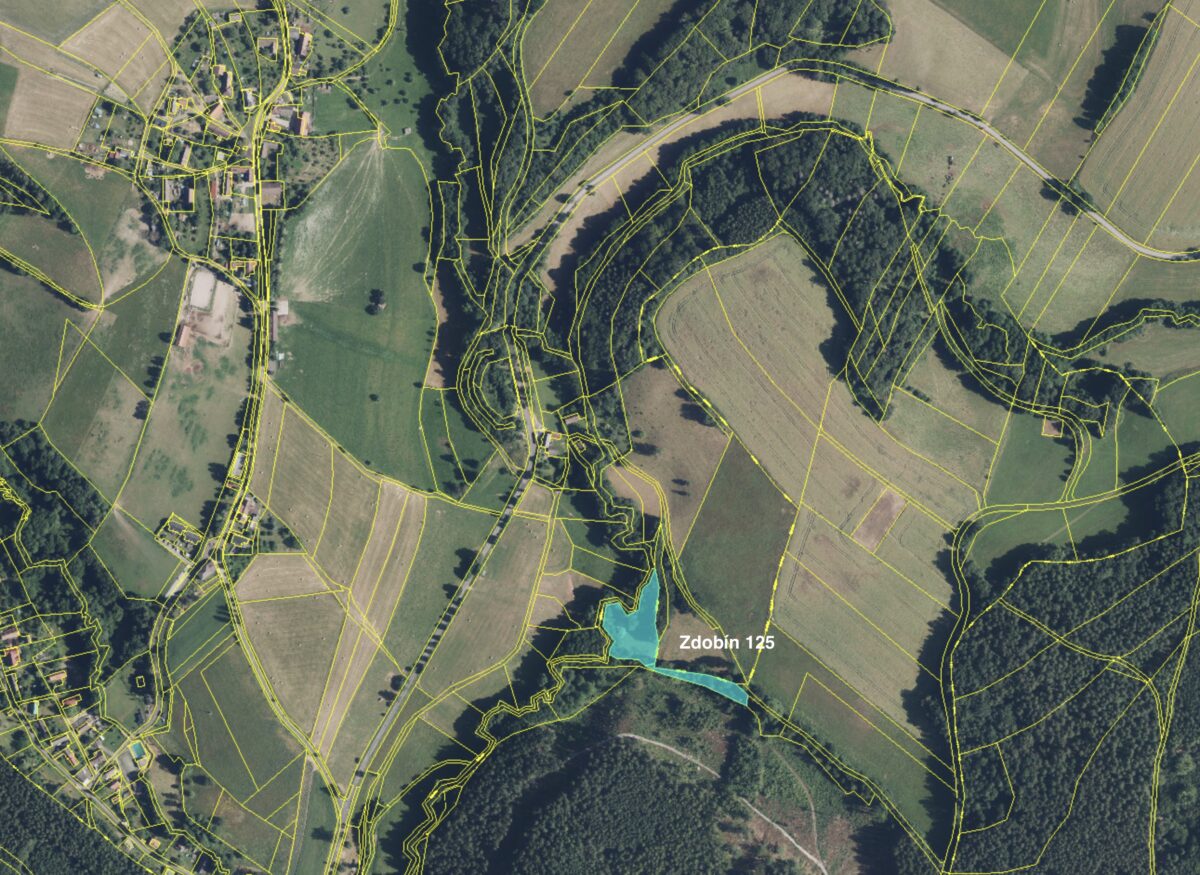 Součástí prodeje je také 4644 m2 ve vedlejším katastrálním území Zdobín. Prodávané parcely číslo 186/1, 186/2 jsou vedeny na listu vlastnictví 125.